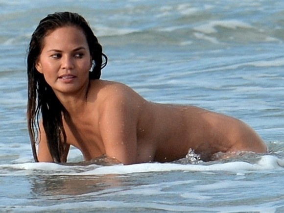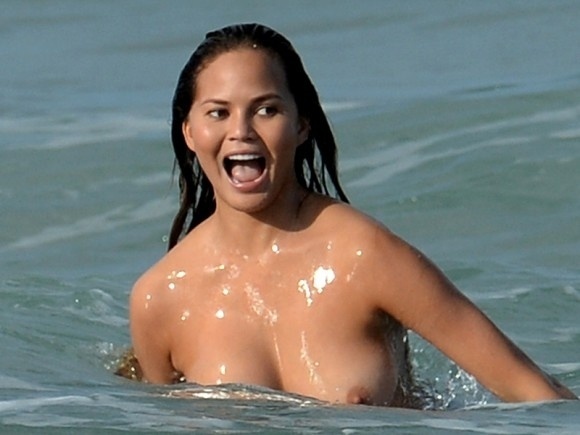 A modelo norte-americana Chrissy Teigen, de 29 anos, foi flagrada fazendo um ensaio fotográfico de topless em uma praia de Miami, nos Estados Unidos. A beldade foi eleita a "modelo mais sexy do mundo" pela edição de abril de 2015 da revista "Glam'Mag"