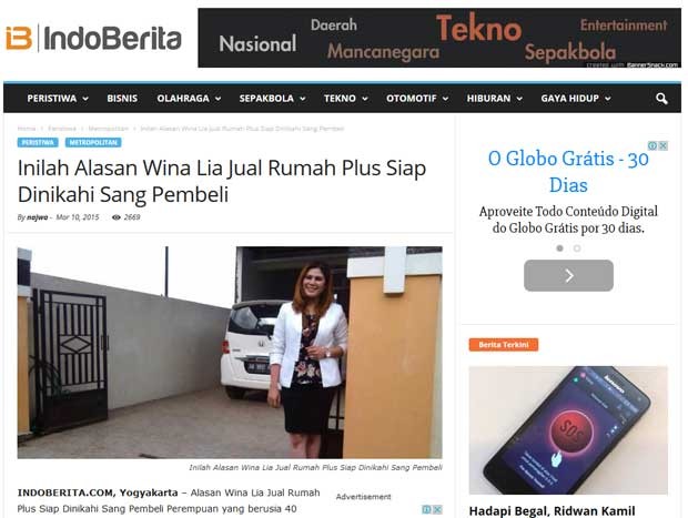 A indonésia Wina Lia, de 40 anos, é a dona da casa e afirmou ao jornal "Kompas" estar de acordo com a oferta, uma vez que está buscando marido. "Todas as vezes que me apaixono é um erro. Aconteceu várias vezes. Meu desejo é vender esta casa, mas seria ótimo se também encontrasse minha alma gêmea", disse.